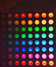La matrice de LED comportent 8 rangées de 8 colonnes de LED RVB (Rouge Vert Bleu - on dit aussi RGB en anglais). Chaque LED RGB est composée en fait de 3 LED mises dans un même chip : une rouge, une verte et une bleue.