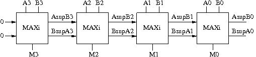 Ce calcul de génère bit à bit le résultat du max, alors que le calcul de maximum basé sur l'arithmétique et un multiplexeur génère tout le mot d'un coup après l'arrivée de la retenue sortante du soustracteur.