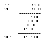 Question Réaliser à la main l'opération : 1001 x 1100 (9x12).