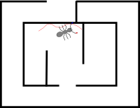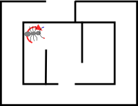 - Au début il est perdu, il avance tout droit jusqu'à trouver un mur.