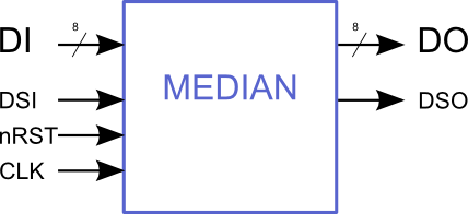 | CLK | Signal 1 bit | Entrée | L'horloge. MEDIAN est un opérateur synchrone sur front montant de CLK |